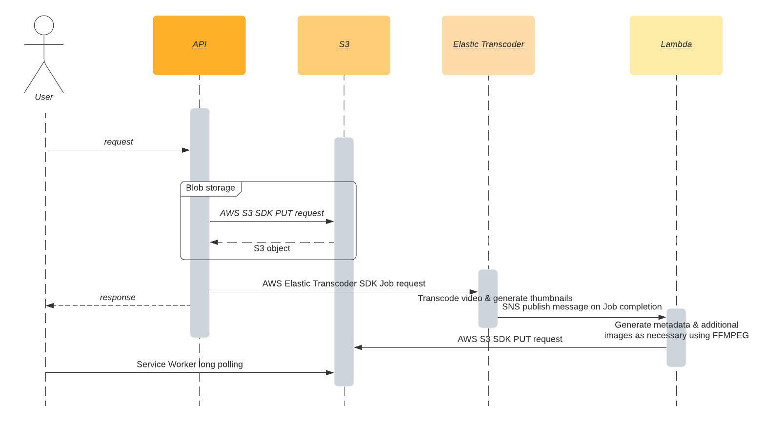 - For this system, video transcoding was happening using AWS Elastic Transcoder to produce various media outputs (Amazon MediaConverter wasn't a thing back then).